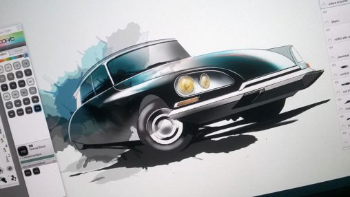 Commande spéciale: illustration d’une Tesla S. Réalisation sur tablette Wacom et Sketchbook Pro, le fichier numérique est ensuite confié à l’imprimeur, plus qu’à choisir son support préféré.